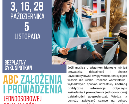 Bezpłatny cykl spotkań w Centrum Przedsiębiorczości w Piasecznie "ABC założenia i prowadzenia jednoosobowej działalności gospodarczej"
