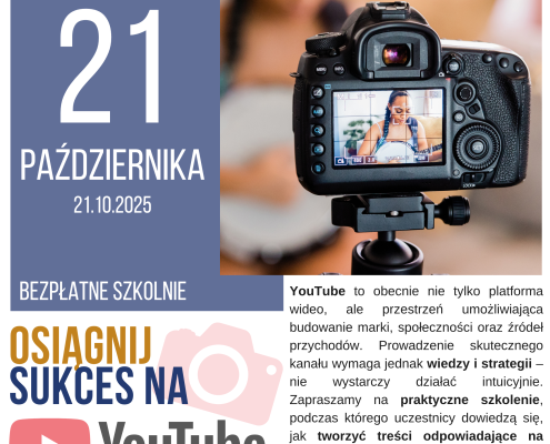 Bezpłatne szkolenie w Centrum Przedsiębiorczości w Piasecznie "Osiągnij suckes na YouTube"