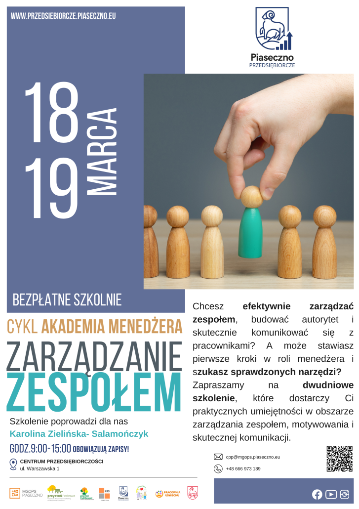 Centrum Przedsiębiorczości w Piasecznie zaprasza na bezpłatne dwudniowe szkolenie z cyklu Akademia Menedżera „Zarządzanie zespołem”.