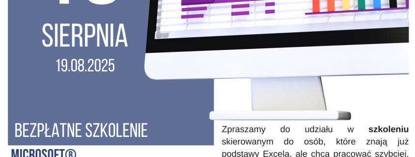 Bezpłatne szkolenie w Centrum Przedsiębiorczości w Piasecznie „Microsoft Excel – poziom średniozaawansowany – budowa inteligentnego arkusza”