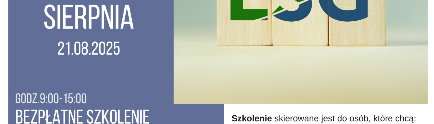 Bezpłatne szkolenie w Centrum Przedsiębiorczości w Piasecznie „Podstawy ESG- Environmental, Social, Governance”