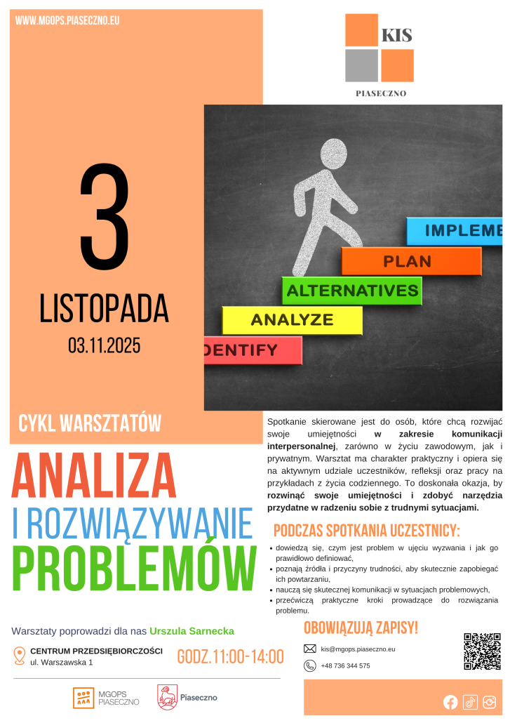 Bezpłatny warsztat w Centrum Przedsiębiorczości w Piasecznie „Analiza i rozwiazywanie problemów”