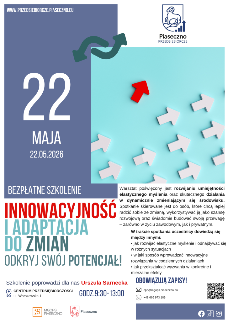 Centrum Przedsiębiorczości w Piasecznie zaprasza na bezpłatny warsztat „Innowacyjność i adaptacja do zmian – odkryj swój potencjał!”