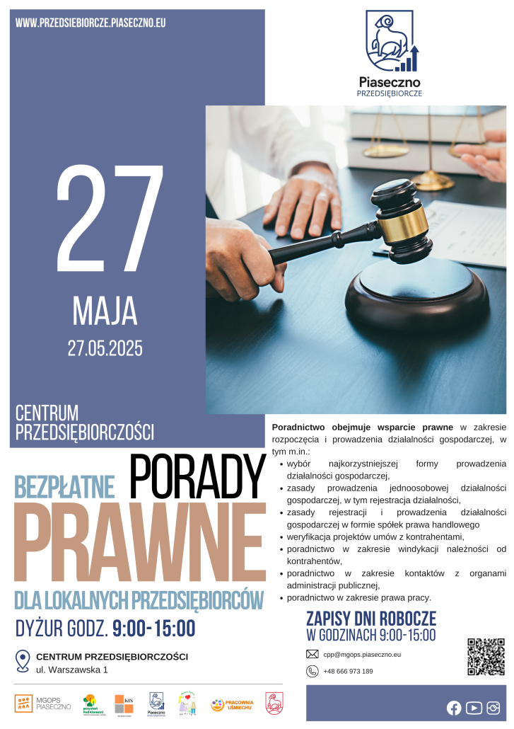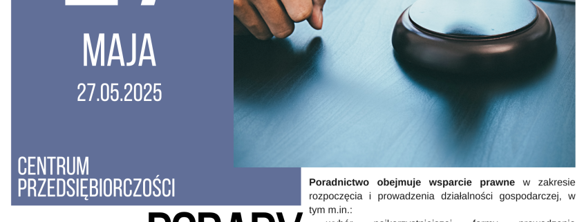 Centrum Przedsiębiorczości serdecznie zaprasza lokalnych przedsiębiorców na bezpłatne porady prawne.