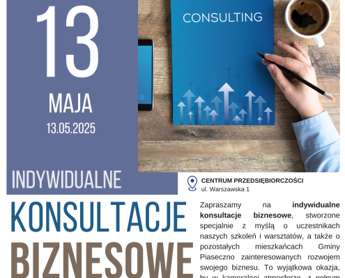 Centrum Przedsiębiorczości w Piasecznie serdecznie zaprasza na Indywidualne Konsultacje Biznesowe