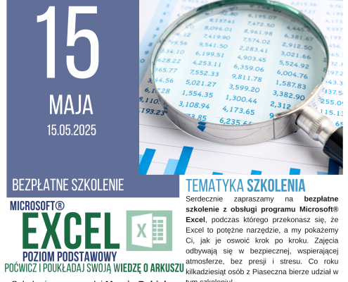 Bezpłatne szkolenie w Centrum Przedsiębiorczości w Piasecznie "Microsoft® Excel - poziom podstawowy. Poćwicz i poukładaj swoją wiedzę o arkuszu"
