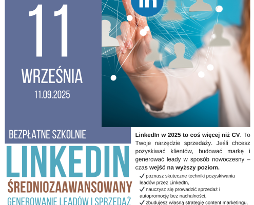 Bezpłatne szkolenie w Centrum Przedsiębiorczości w Piasecznie "LinkedIn średniozaawansowany - generowanie leadów i sprzedaż - jak to robić w 2025 r."