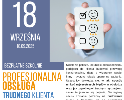 Bezpłatne szkolenie w Centrum Przedsiębiorczości w Piasecznie "Profesjonalna obsługa trudnego klienta"